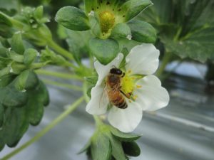 いちごの花が咲いたのでミツバチに受粉を行ってもらうためです。