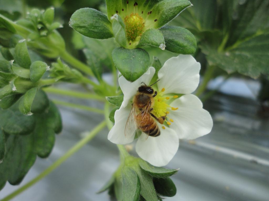 と思うのですが、いちごの花にはほとんど蜜はなく蜜は集まらないんです^^;
