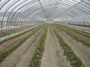 先日の高設栽培ハウスに続き、土耕栽培ハウスも定植